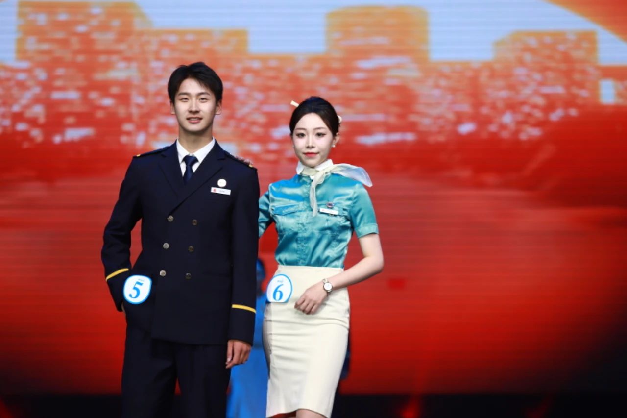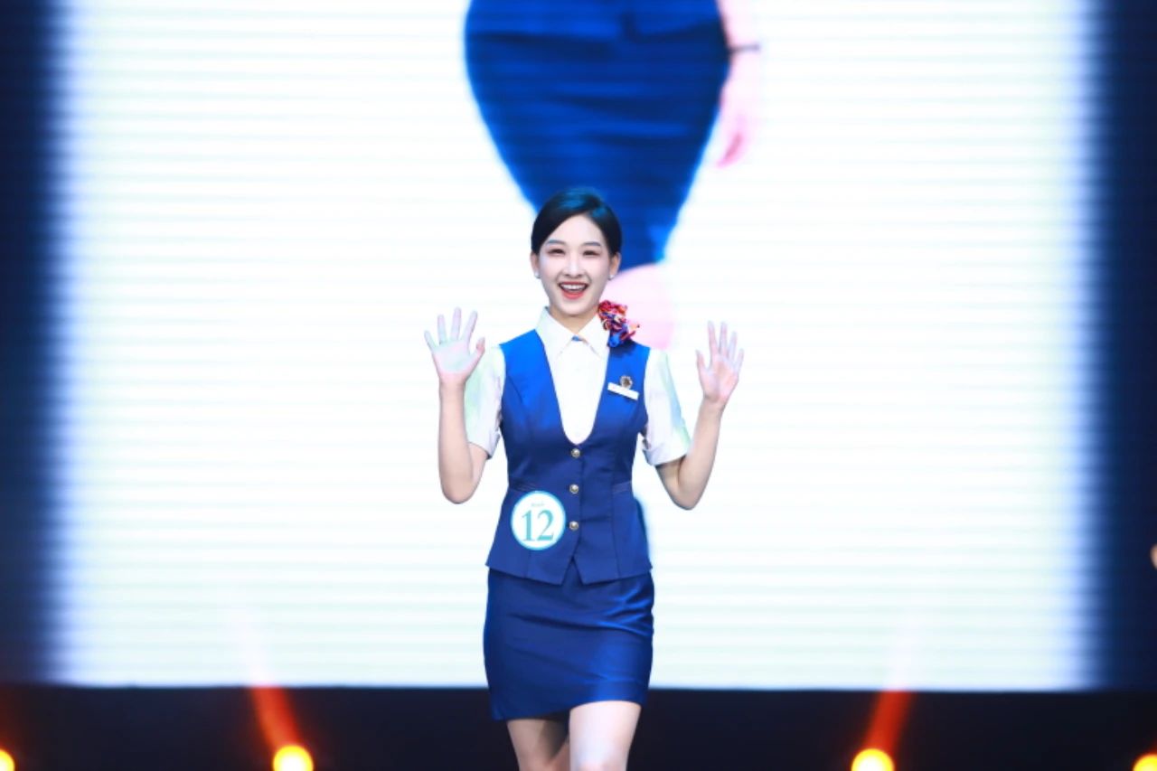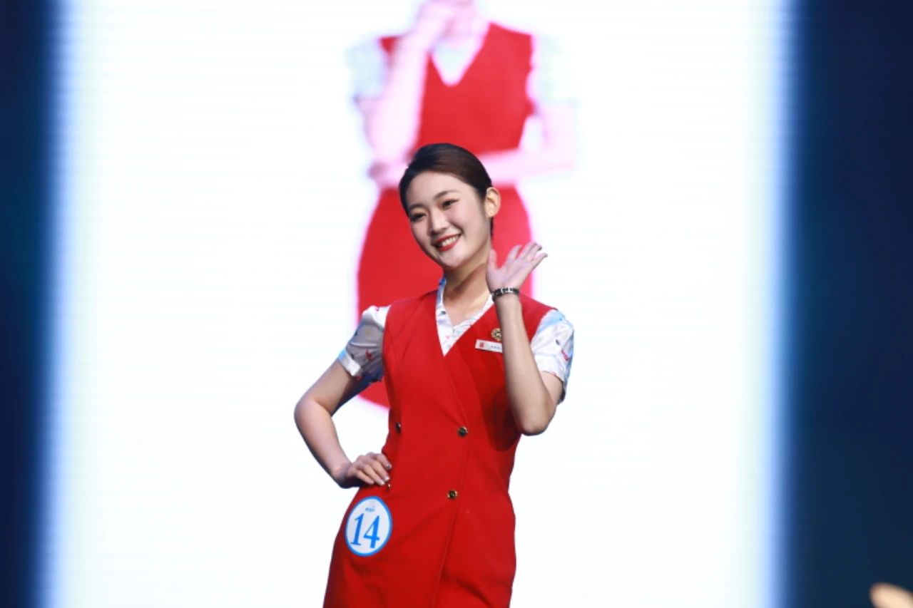 每位选手身着不同的制服,跟随指令向大家展示了航空技能的掌握程度。在中文口播老师周晨竹和英文口播马悦老师的双语配合下,观众完全沉浸在了现场的氛围中,那一刻就感觉坐在了头等舱里。随后的走姿展示,选手们向观众展示了制服的特色也展现了自己最闪亮的一面,此时的他们既是对手更是搭档。