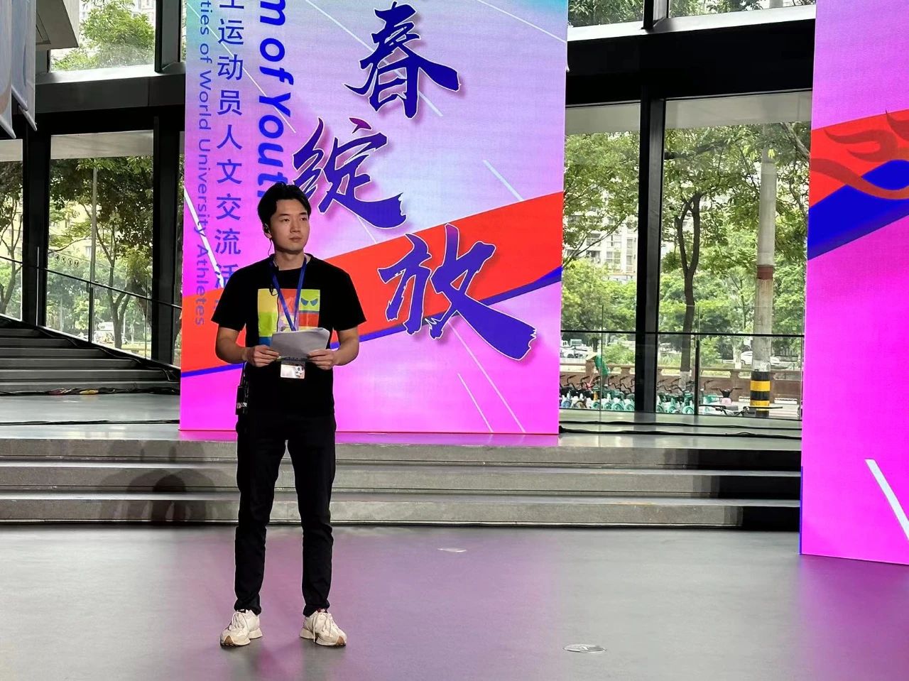 受组委会邀请 ,川影播音主持学院副院长周欣副教授担任现场导演,带领来自播音主持学院2020级、2021级摄像制作提高班的十余名同学与总台导演组团队在本次世界大学生运动员人文交流活动导演组担任实习实践工作。依托在学校学习的理论知识,通过专业生动的实践,对于高规格大型活动导演创作、录制的项目式实境操作得到了一次深刻而又难忘的学习和体验。活动通过央视新闻、央视频、凤凰网、四川观察、看度新闻等现场直播。