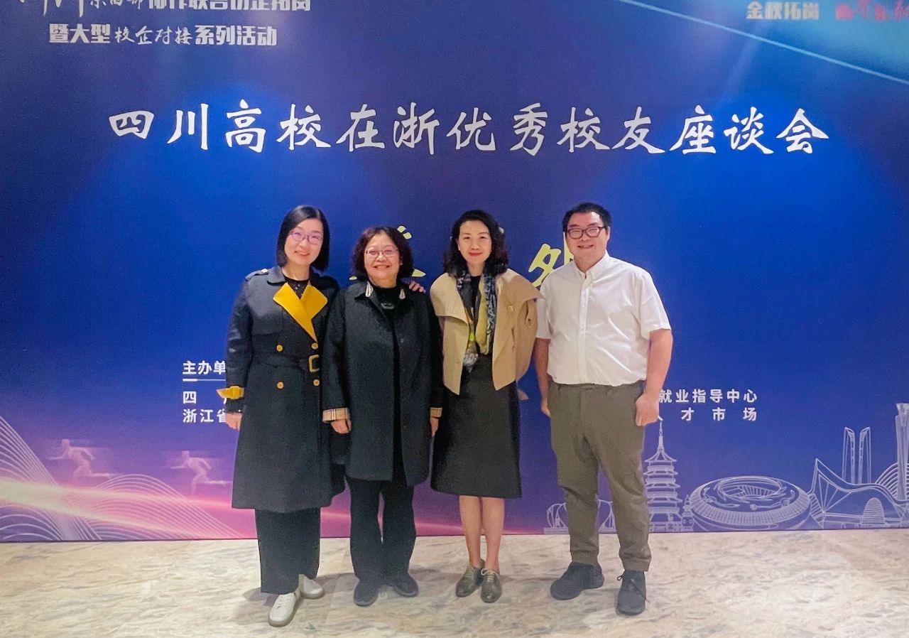 10月30日,川影党委副书记、副校长罗思,播音主持学院院长赵小蓉,招生就业处副处长傅赟及川影在浙校友代表曹林参加了由中共四川省委教育工委、四川省教育厅主办的浙川东西部协作联合访企拓岗活动优秀校友座谈会。