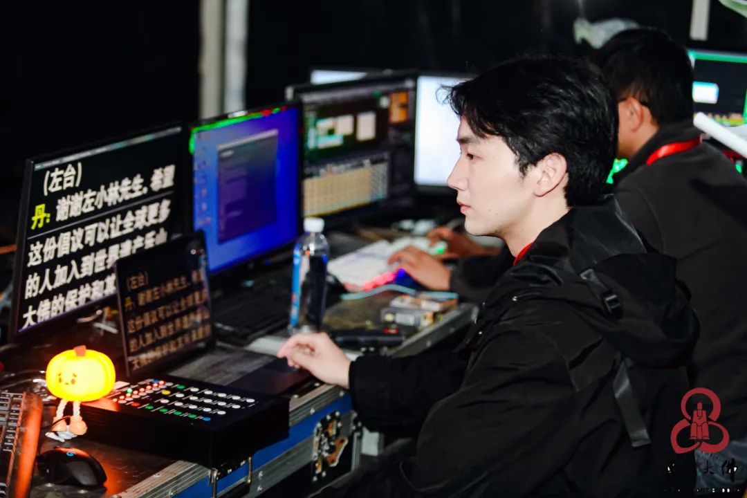 受主办方邀请,beat365平台官方网站“电视采编播一体化”省级实验教学示范中心与川影师生再次携手校企合作友好单位——四川文化传播有限公司进行项目式实训。由播音主持学院副院长、“电视采编播一体化”省级实验教学示范中心主任周欣副教授,带领来自播主学院2021级摄像制作提高班的多名学生与导演团队在第六届乐山大佛旅游文化节导演组担任实习、实践工作。同时播主学院2021级配音提高班、广播新闻播音提高班、电视新闻播音提高班、社教节目主持提高班、综艺节目主持提高班、少儿节目主持提高班的部分同学也参与演出实践。其中配音提高班的同学们不仅完成了舞台演绎,还为大秀的24位古人配音,川影师生共同完成了一场气势恢宏的开场大秀。同学们依托在学校学到的理论知识,在现场的实践过程中完成真实的项目体验和操作。