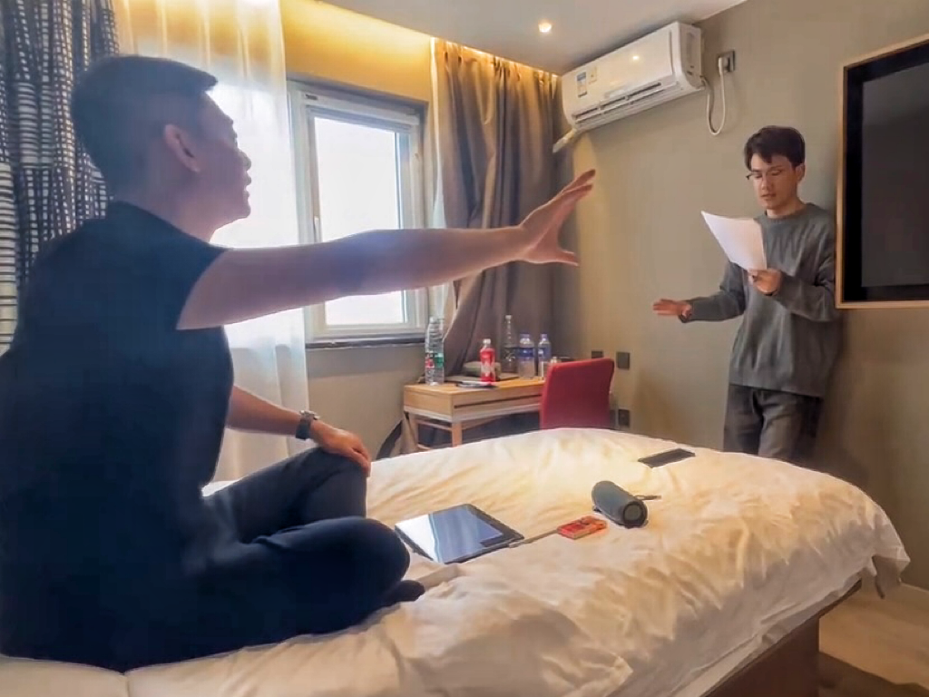 ▲11月10日,一下飞机到达北京,叶轶凡、路萍老师就开始带同学们进行排练