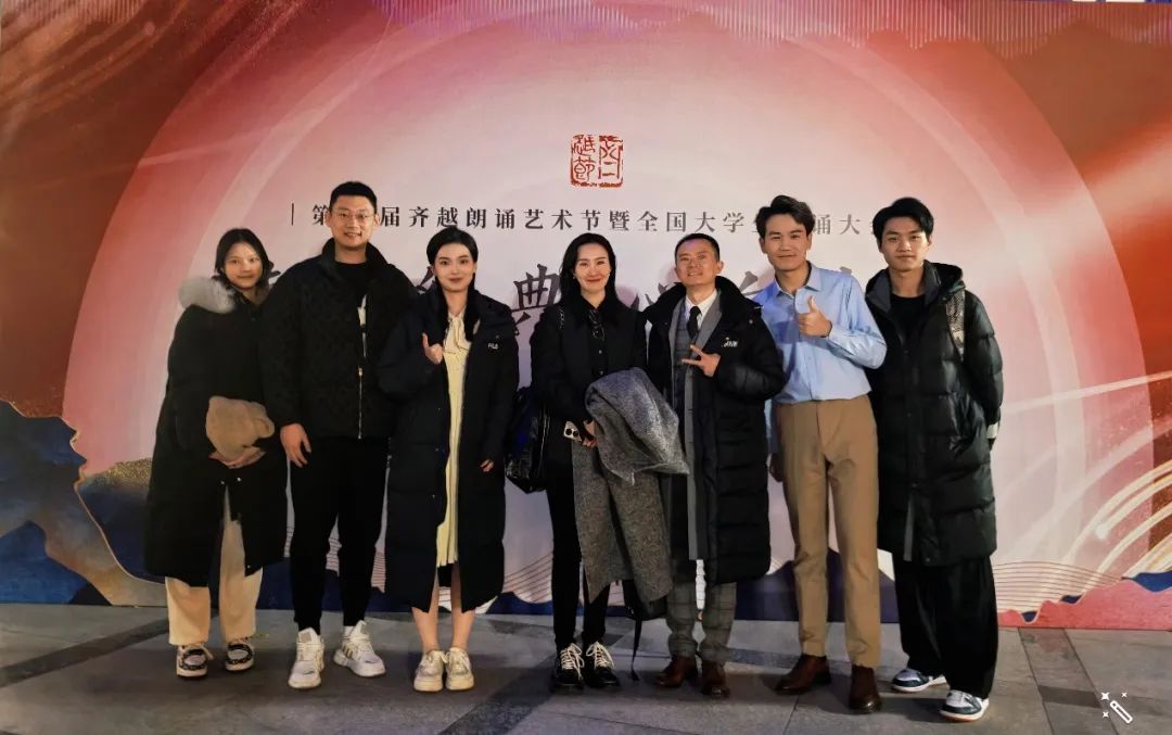 今年的齐越节是时隔三届后再次线下比赛,各个高校“磨拳擦掌”,做足了准备。自接到齐越节大会公告起,我们就用心选取作品,从备稿、调整文字结构,再到排练录制,同学们从最初的兴奋到排练中的迷茫,再到最终的录制,内心好似过山车一样,跌宕起伏。最终,由彭静如、周宜康两位同学完成的作品《守岛英雄》顺利进入到复选阶段。在准备复选比赛的这段时间,他们也突破了一些表达的瓶颈,越来越自如、放松、纯粹的呈现作品。还记得在他们复选比赛前一天晚上我和他们说:“明天,只是一次呈现。狭义来看,是你们参加全国最高级别的朗诵比赛;广义来说,是你们要给大家讲述王继才和王仕花夫妇守岛32年的艰辛与不易!作为极其了解他们夫妻二人的你们,讲述好他们的故事,传播好中国的声音,是你们的使命,更是你们在职业生涯道路上的一次全情呈现。不要给自己留遗憾,同时也要想着远在开山岛的王仕花同志。想想如果她能看到你们的呈现是不是可以开心、动容!放松、单纯、完整、抛弃杂念、一气呵成!斯人已乘黄鹤去,今声承载其归来!”想到这段时间的排练,最让我欣慰的就是学生们的变化与成长!不管是基本功的纯熟、表达的纯粹,还是作品的投入、流畅、完整,他们每次都有变化,都有进步!今年是我在川影工作的第八个年头,带队参加齐越节也七年了。我始终告诫自己每一次排练都应从头开始,不想结果,只想创作。其间的收获让我和学生们不断成长与进步!这种教学相长,是我始终追求的,更坚定了我在有声语言艺术创作和教学上的目标!再次要感谢校领导、感谢学院领导以及整个播音主持学院对于朗诵团的大力支持。也要感谢学生们的努力,没有他们对有声语言艺术的追求,是不会有今年这样好的成绩。朗诵团始终践行:纸上得来终觉浅,绝知此事要躬行!这里是终点,也是起点!