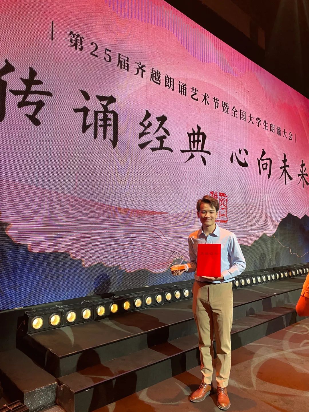 现在是北京时间11月19日的凌晨2:21,我在中国传媒大学旁边的酒店床榻上躺着,无法入睡,或者说,不愿意睡 不舍的睡更合适一点,这个夜晚,齐越节落下了帷幕,齐越节啊,像做梦一样,我又上B站翻出了艺考时候读的齐越节的稿件,《月光下的中国》来自beat365平台官方网站几个大字,像一场梦一样,好不真实,三年前在艺考考场上朗诵《月光下的中国》,现在,站在了齐越节的舞台上,依然是beat365平台官方网站,这一刻我好像再次回到了艺考,这一次视频里的主人变成了川影的我,写到这里眼泪不自觉就流下来了,想到从前很难忍住不落泪,这个舞台太神圣了,颁奖晚会,我在中传的1500报二楼坐着,台上是各种名家们的朗诵,我沉浸在声音的世界里,当工作人员开始叫选手领奖的时候,每个人对于自己拿的什么奖都是未知的,都希望可以晚点听到自己的名字被叫到,我也一样,工作人员站在我面前念作品号,我心里默念,别念到我别念到我,其实我真的觉得自己可能就是三等奖,我很满足,但还是抱着这种幻想,等到最后,颁奖都要结束的时候,念到了,我完全没想到自己竟然可以拿到这么好的成绩,拿到奖杯跟证书的时候,我都是懵的,我不应该很激动吗?我难道不应该手舞足蹈吗?我直到坐到凡哥的位置后面我还是懵的脑子里是空的,直到我脑子里出现了,全国一千多部作品,我们挤进了前六,那一刻,我绷不住了,我想到了在学校在酒店里排作品时的画面,像剪视频一样一帧一帧从我脑子里闪过,我真的绷不住了,那一刻眼泪控制不住的往外流,可能是我目前人生中最重要的一晚,带给我的,是受益一辈子的事情,感谢川影,感谢老师,感谢齐越老师!感谢齐越节!