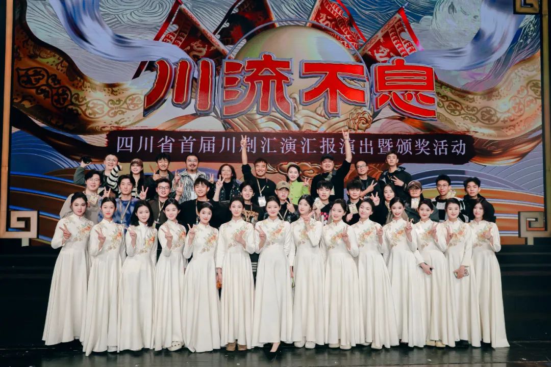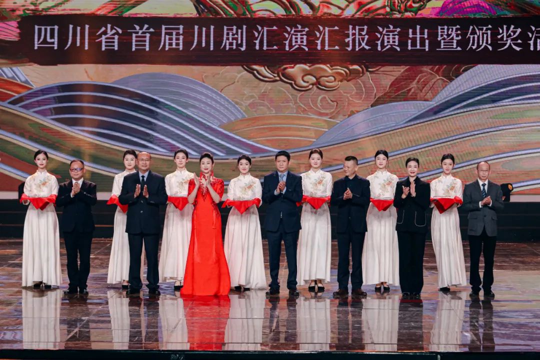 当晚,成都城市音乐厅歌剧厅名角荟萃、新秀竞妍,各有关院团在省首届川剧汇演汇报演出暨颁奖活动中纷纷献艺。参加演出的既有《白蛇传》《柳荫记》等经典名段,也有捧回文华奖的《草鞋县令》等新编剧目唱段。当晚的活动既齐聚了川渝地区的十二位中国戏剧“梅花奖”得主,也有来自各地方院团的中青少演员,精彩的表演与新颖的多媒体舞台手段交织,充分展现了川剧艺术的深厚底蕴、独特魅力和近年来川剧振兴取得的成效,现场不时爆发出热烈掌声和喝彩声。我院学生在台前幕后的精彩表现得到领导和现场观众的高度赞扬。