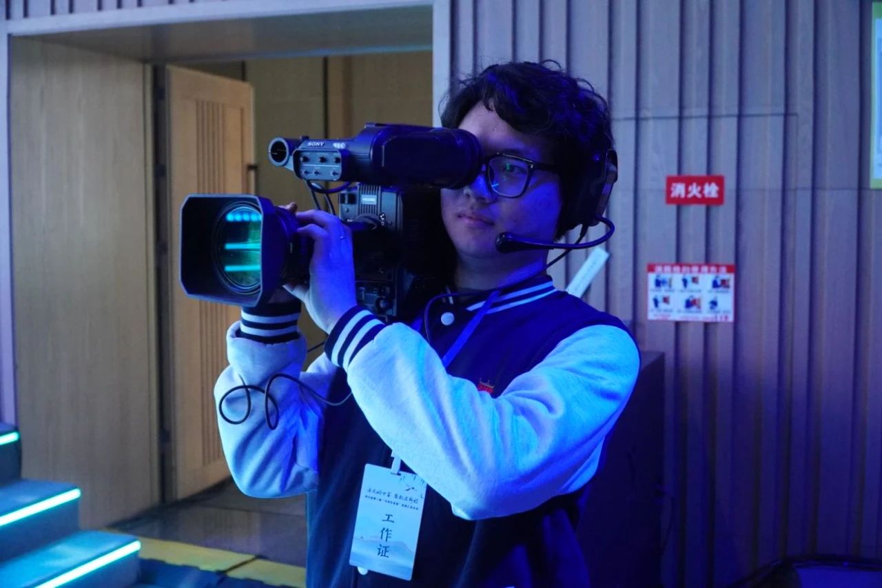 焦奕博:这次担任八号机的摄像,让我跟着摄像老师学到了很多的知识,游机的拍摄方式相比于固定机位比较特别,是要用肩膀扛起来随时抓拍人物,这次活动也让我学到了很多的知识,让我明白了很多的拍摄技巧,同时在彩排过程中和转播车里的同学打起了配合,让我们之间的合作更加熟练。尤其是节目内容对我的影响,就是一次最好的“课程思政”现场教学,让我又成长、收获了许多。