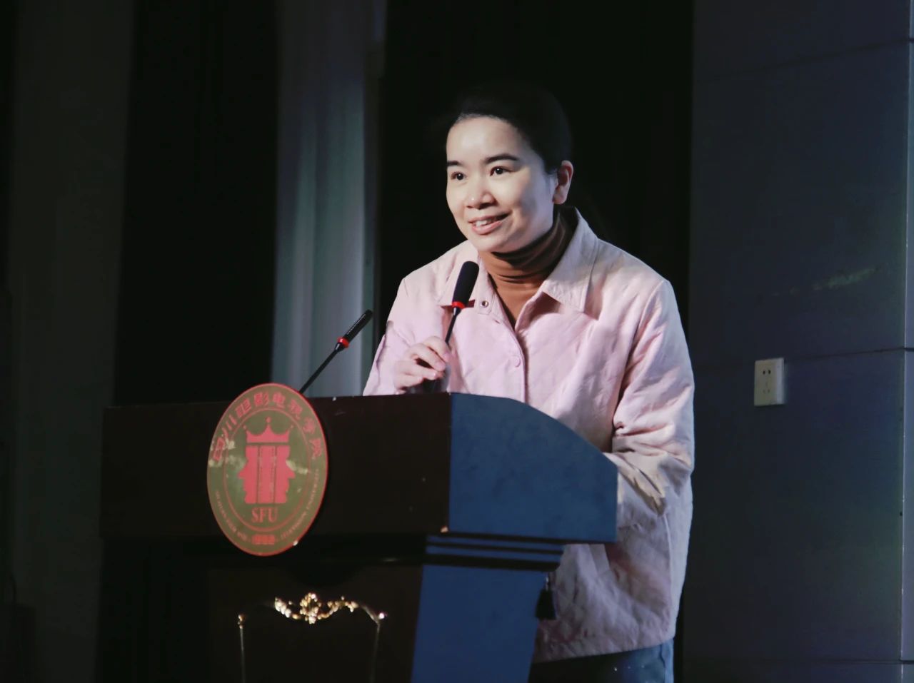 ▲播音教研室主任刘莹进行述职总结