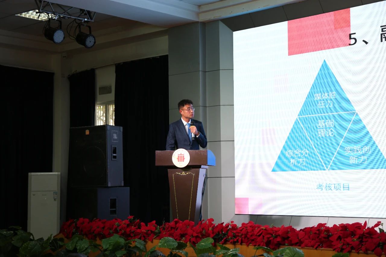 播音主持学院为备战我校第二届课程思政教学大赛,3月15日,学院专门举办了第二届课程思政大赛赛前教学培训暨播音主持学院教师教学能力工坊第二期。特邀西华大学吴昌东教授对老师们的课程思政教学能力提升、课程思政如何“润物细无声”地融入教学、说课、教学展示、课程设计、课程思政案例设计等环节进行了指导。