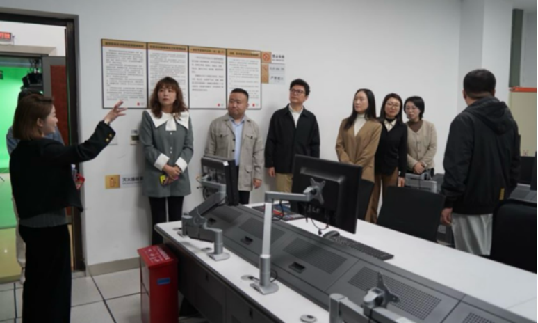 ▲参观“电视采编播一体化”省级实验教学示范中心