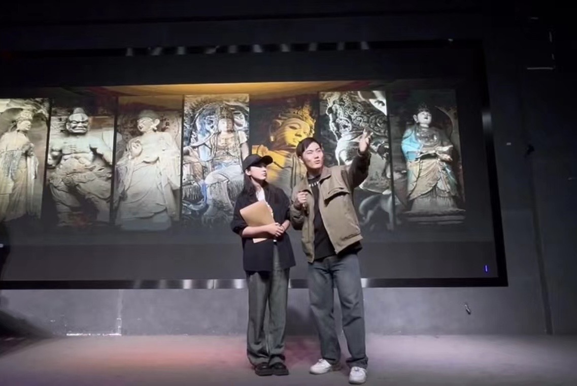 在接到地方政府的邀约后,播音主持学院拔尖创新班高度重视,派出21级创新班三名学生齐莎莎、张钱龙、李顺通共赴成都文殊坊,在安岳石刻文化艺术季演绎情景剧,带领大家走进安岳,赏千年石刻、闻百年柠香,让珍贵的地方文化遗产“活起来”。