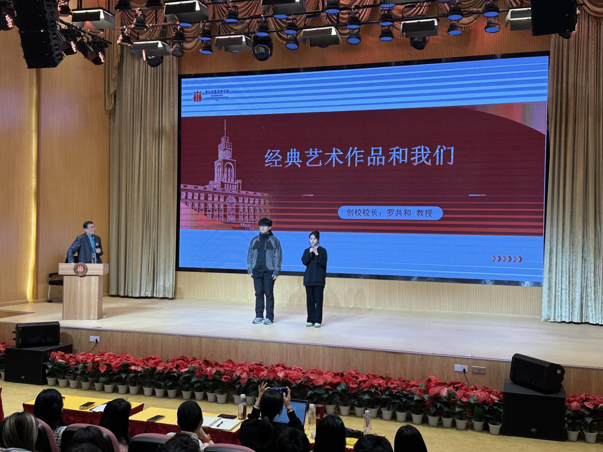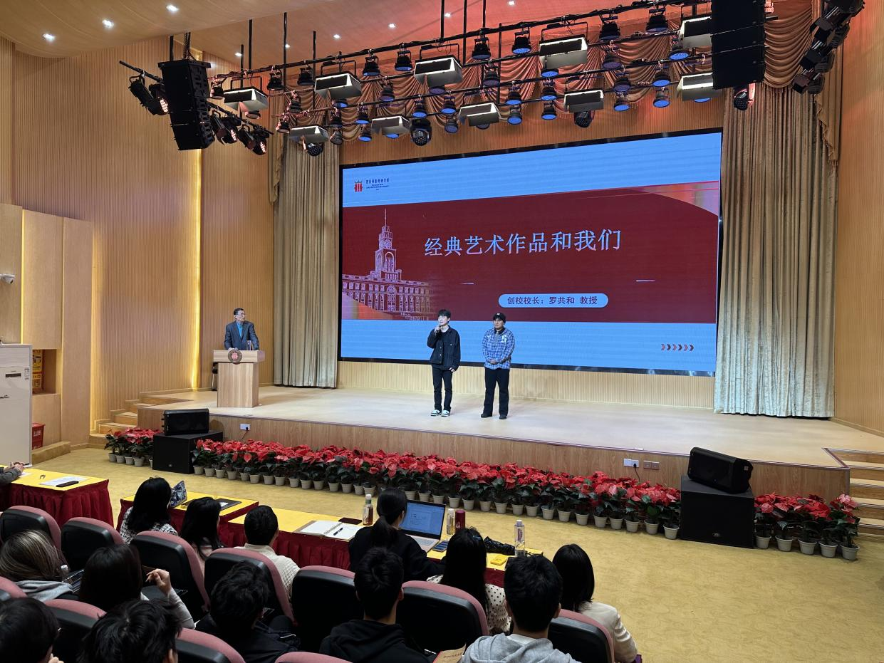 4月9日19:00,beat365平台官方网站创校校长罗共和教授为播音主持学院2023级拔尖创新人才培养班(后简称创新班)开设艺术讲座,主题为“经典艺术作品与我们”。本次讲座中,播音主持学院党委书记、副院长李丹,播音主持学院副院长张亮,及创新班大一年级创新班教师都参与其中。罗校长为在场师生带来了一场意义非凡的艺术课。此次课堂以“经典艺术作品与我们”为主轴,激发了同学们对艺术的深层思考,并提升了拔尖人才的艺术鉴赏能力。
