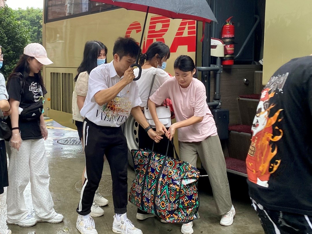 当天一早,老师们便来到金牛校区志愿地点,等待学校统一安排的大巴车到校后,组织进行新宿舍行李搬运。除了协助搬运行李,支部老师还在食堂门口设有“党员为您服务”的临时窗口,为学生提供咨询服务。