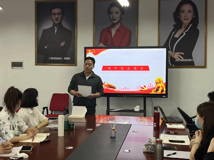 会议开始后,播主学院教工第二党支部书记张宇楠总体介绍了第二党支部基本情况,随后带领全体党员预备党员学习了全国两会精神,重点对本届两会的六大看点和十大热点话题进行了详细的阐述和解读。