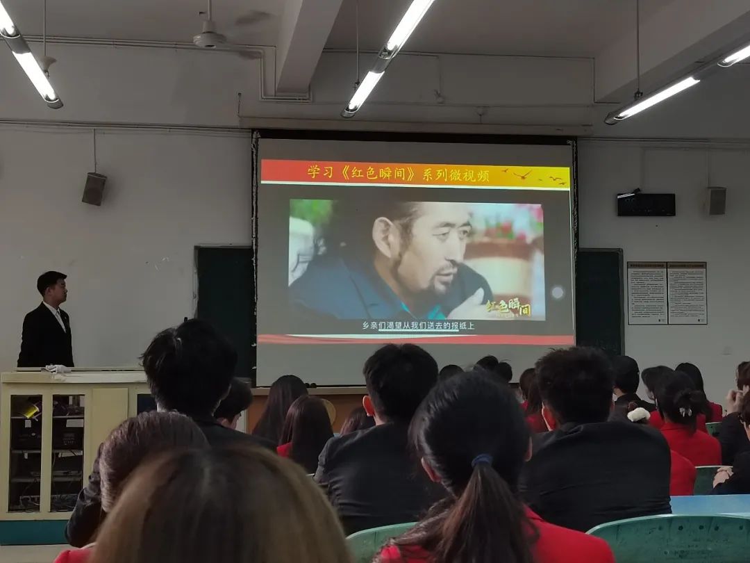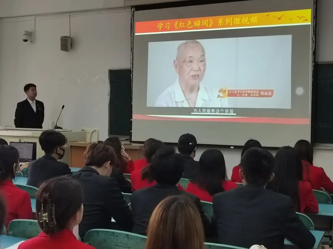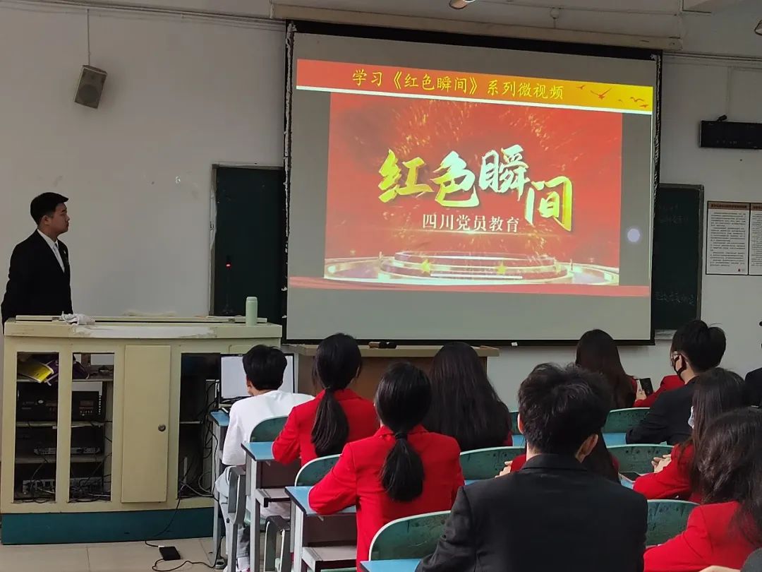 活动开始由支部秘书庞楠带领大家观看由四川省委组织部党员教育中心推出的系列微视频《红色瞬间》,视频中,周永开、柴云振、其美多吉、刘传建等一批优秀党员的故事让同学们深受启发。