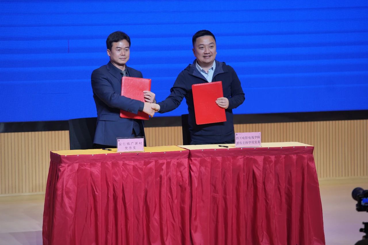 ▲广贤村党总支与播音主持学院党委签署《共建助农电商直播基地合作协议》