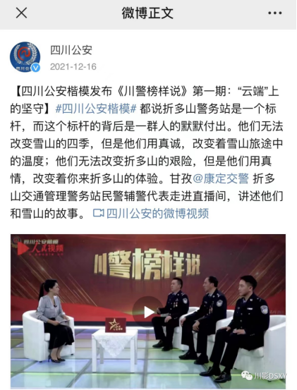 完成四川省公安厅节目《川警榜样说》的录制工作