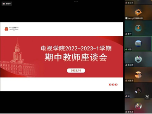 10月26日晚,川影电视学院2022-2023学年第一学期期中教师线上座谈会顺利开展。电视学院院长苏亚平,副院长刘丽,党委副书记刘璐,院长助理毕园及全体教师参会。