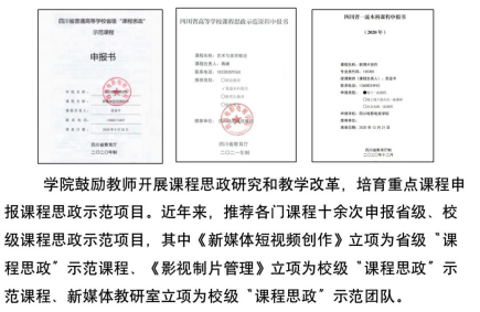 电视学院结合广播电视编导专业教学特点,发挥课堂教学为主渠道的育人作用,将“课程思政”意识渗透到到所有专业课的教学中,并开展以“立德树人”为本的应用型影视人才培养模式,在师资队伍建设中不断强化教师执行课程思政的教学意识,在课程建设中注重课程思政的重点培育与全面覆盖相结合,在学风建设上充分发挥基层党组织引领三全育人工作的落实。