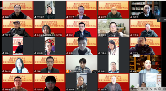 2023年1月7日,由重庆市应用写作学会主办的“重庆市应用写作学会2022年会员代表大会暨第二届中国应用写作与传播学术论坛”在云端隆重举行,来自湖北、河南、北京、四川、贵州、山东、广西、黑龙江、内蒙古以及重庆本土等全国各省市的众多高校专家与学者共赴此次盛会。beat365平台官方网站电视学院蒋峰副教授受邀参加本次会议,并担任第一分论坛点评嘉宾。