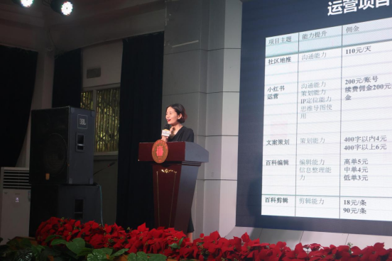 最后,AIGC原点传媒公司向同学们介绍了公司的运营项目,这些项目为同学们就业提供了一些便捷的方式途径。来自金沙网络视听人才行的老师向同学们发出征稿邀请,鼓励同学们积极创作,产出更多优质的网络视听作品。