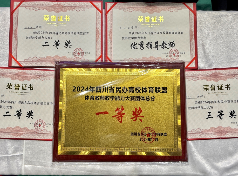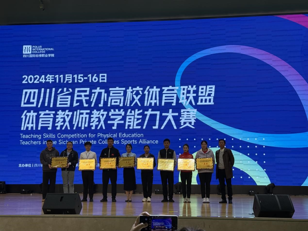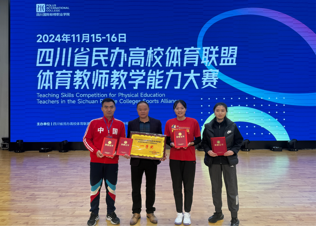 为提升体育教师的专业素养和教学技能,进一步推动体育教学的创新与发展。2024年11月16-17日,四川省民办高校体育联盟体育教师教学能力大赛在四川国际标榜职业学院举行。beat365平台官方网站基础教学部体育教研室选派出孙世娇、曹定兵、慕明三位老师由蔡小林老师带队参加本次比赛。我校教师发挥出色,荣获两个二等奖、一个三等奖、优秀指导教师奖、团体总分一等奖的优异成绩。