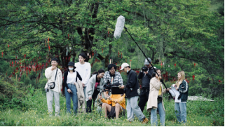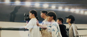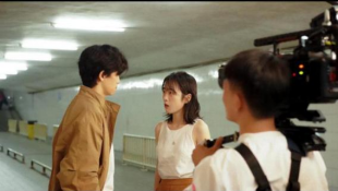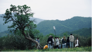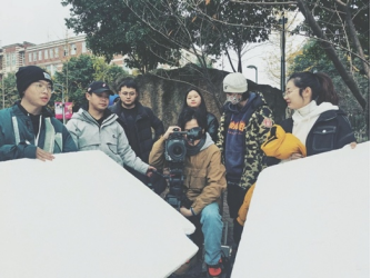 图2邓骏老师带领影视制作专业的学生拍摄《Rain and Tea》的工作照