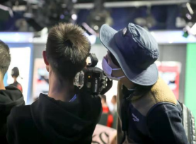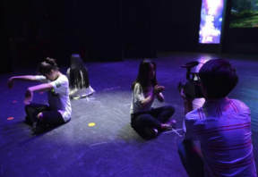 图5影视制作专业的拟声课上,学生正在用道具做电影里需要的声音