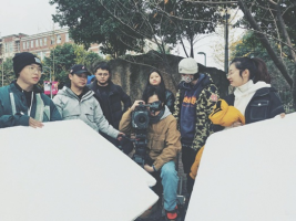 1、邓骏老师带领学生外出拍摄微电影《Rain and Tea》