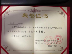 (2)李磊老师指导团队在“长虹草莓台后浪推流计划暨川影短视频创作推流大赛”获得三等奖。(图3.2)