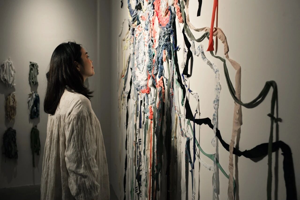 当工业化的痕迹浮现,在《第四把椅子》中,簇锦的工业记忆在数字时代被挖掘和塑造。走访各个家具厂之后,作品以家具产业的边角料与废材堆叠出一个“缺席的椅子”。它在视觉上回应了“一把与三把椅子”的经典艺术命题,却将焦点转向簇锦作为家具重镇的历史经验:劳动的痕迹与集体的情感,在废料与残影之间被悄然保存。叙事延伸至当下,《无界》以“废弃衣物的再生”为切入点,邀请居民捐赠旧衣并将其转化为创作材料。经过色彩的整理与纤维的交织,柔软而流动的织体逐渐生成一个共生性的装置。在这共同编织的过程中,社区关系被形象化为一种隐喻——在无界的织网中,私人与公共、碎片与整体被重新缝合,勾勒出可共融的社区景观