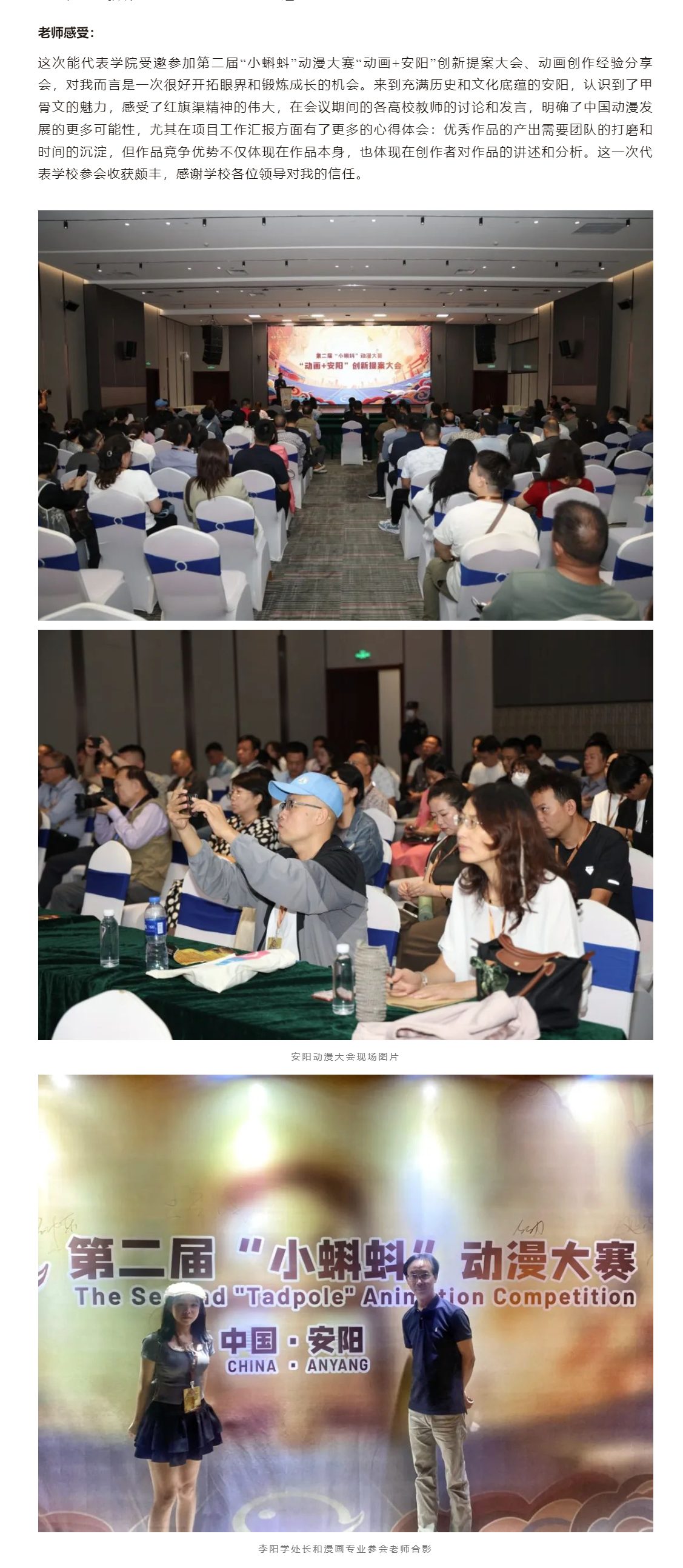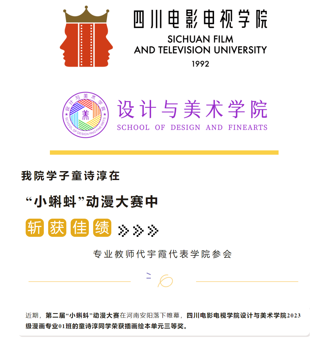 学生获奖 ▍我院学子童诗淳在“小蝌蚪”动漫大赛中斩获佳绩,专业教师代宇霞代表学院参会
