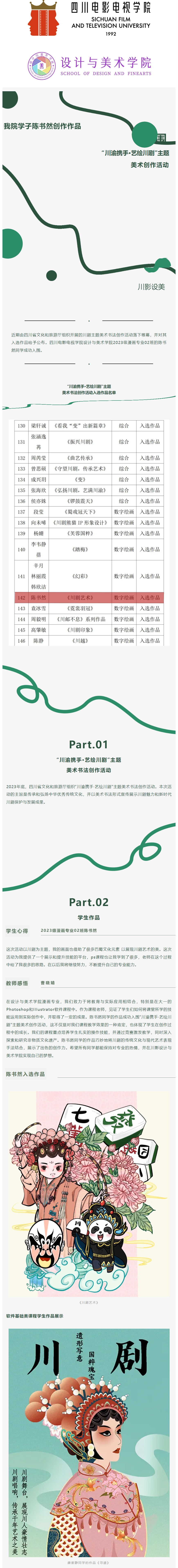 漫画专业 ▍我院学子陈书然创作作品入围“ 川渝携手·艺绘川剧”主题美术创作活动