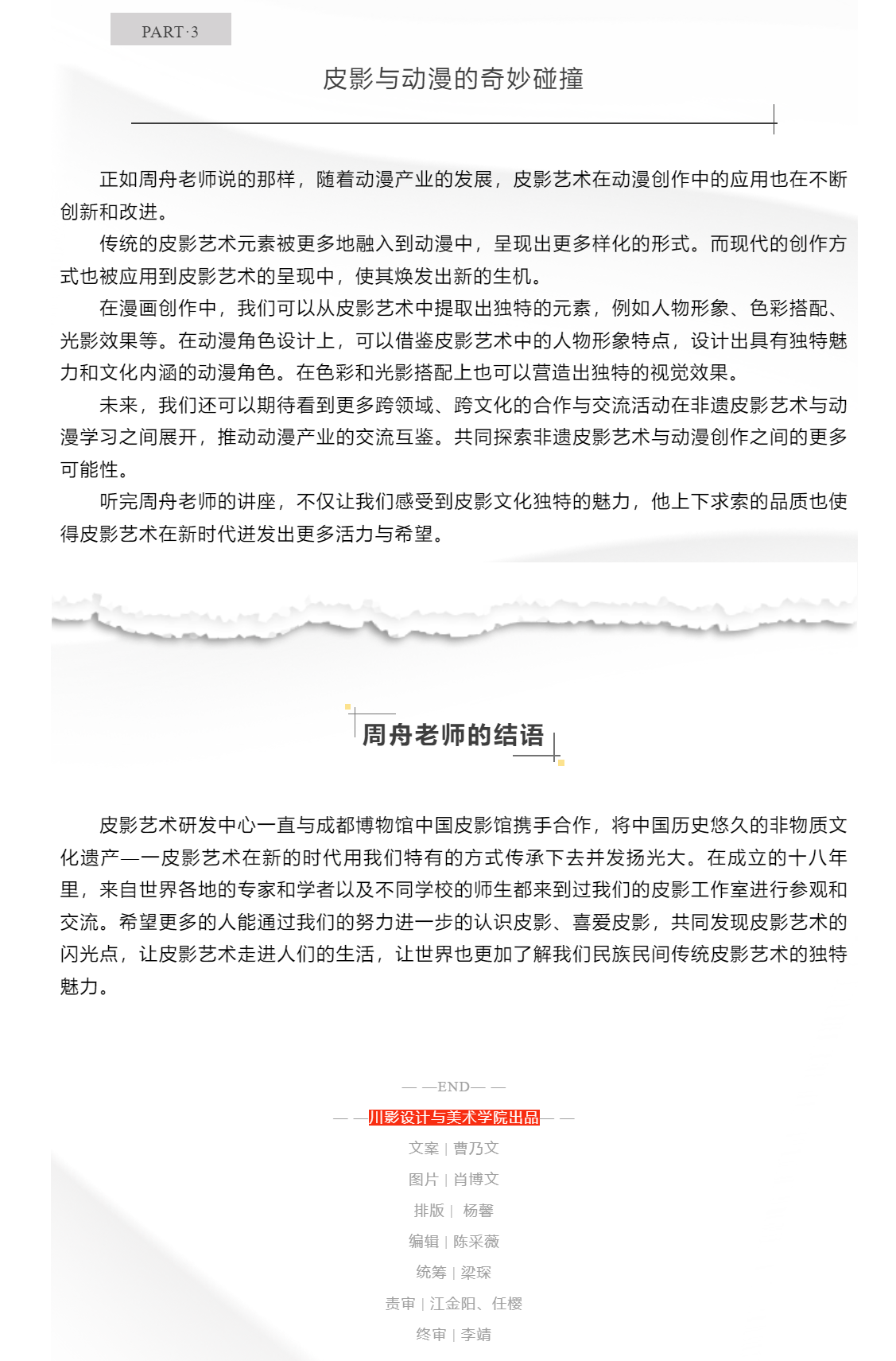漫画专业 ▍讲座:非遗皮影“动”起来与动漫学习的奇妙融合