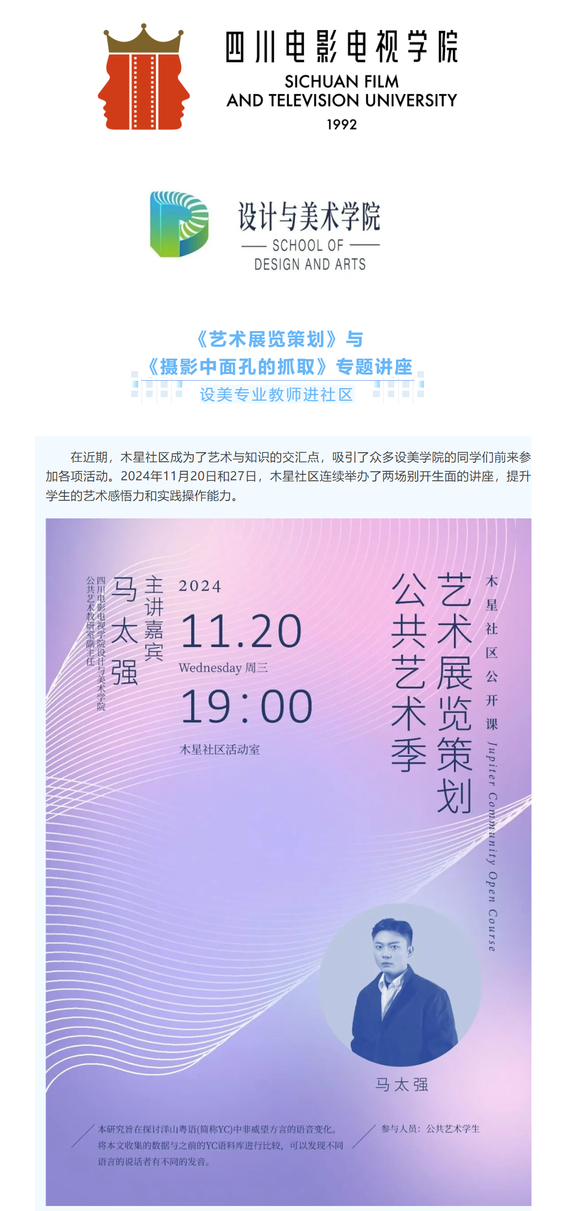 社区建设|《艺术展览策划》与《摄影中面孔的抓取》专题讲座--设美专业教师进社区