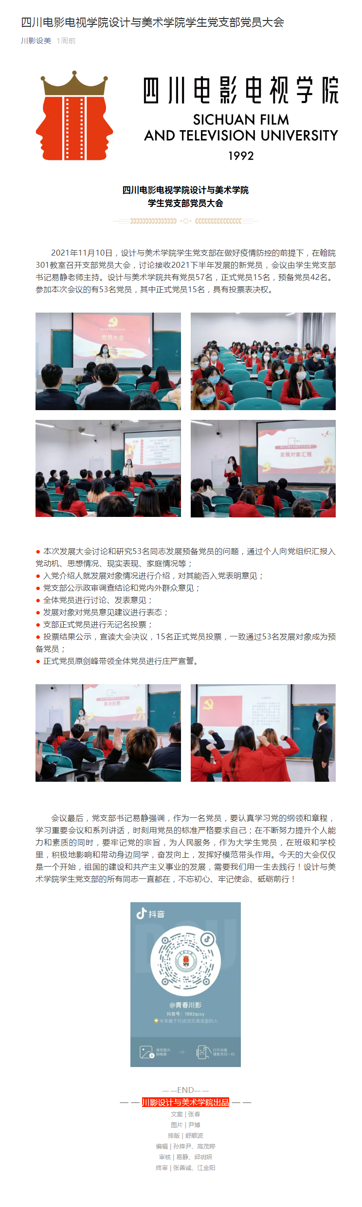 beat365平台官方网站设计与美术学院学生党支部党员大会