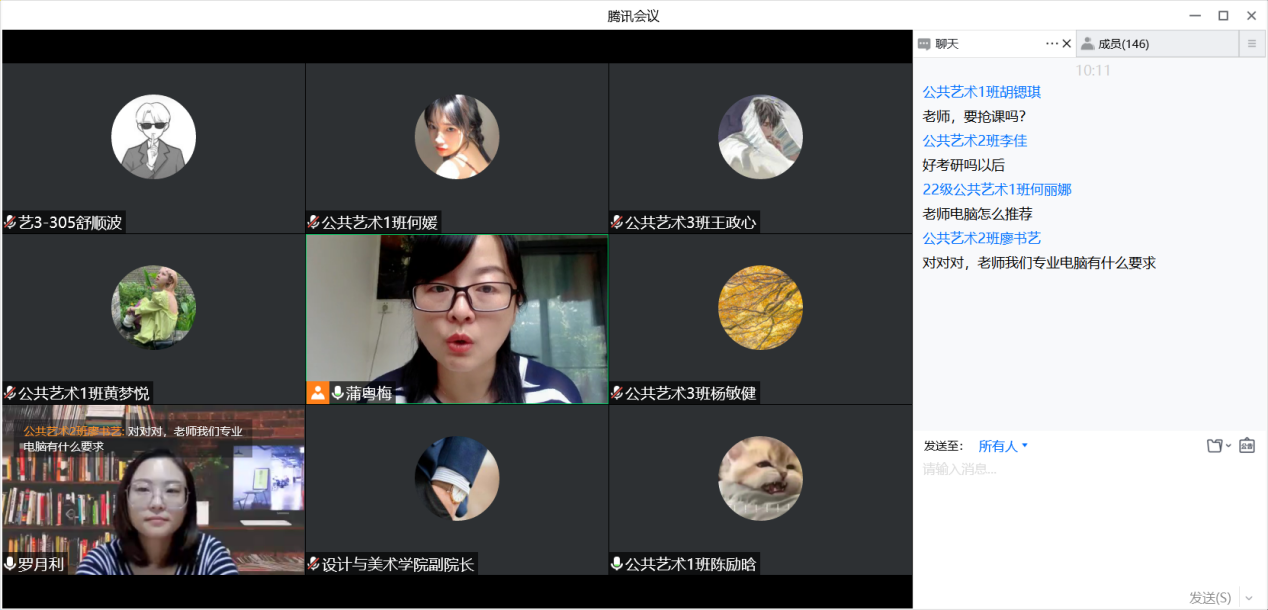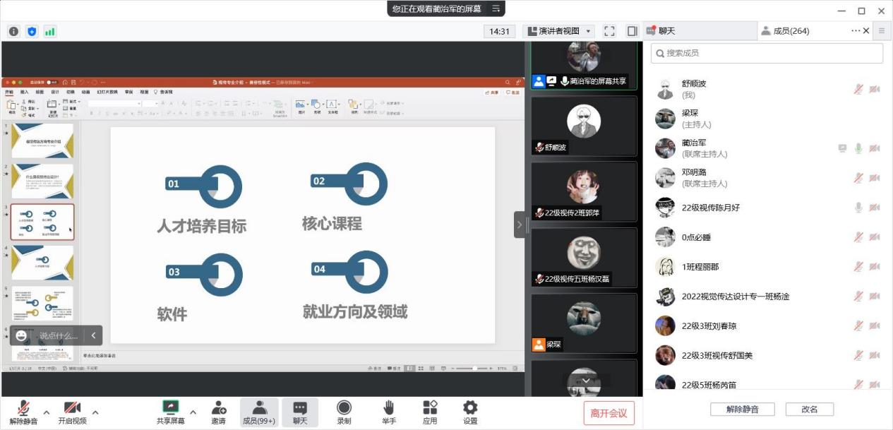 次日上午九点,专业介绍会在腾讯会议展开,2022级新生入学教育工作小组全体参加,两场会议围绕视觉传达方向专业和公共艺术方向专业问题展开。
