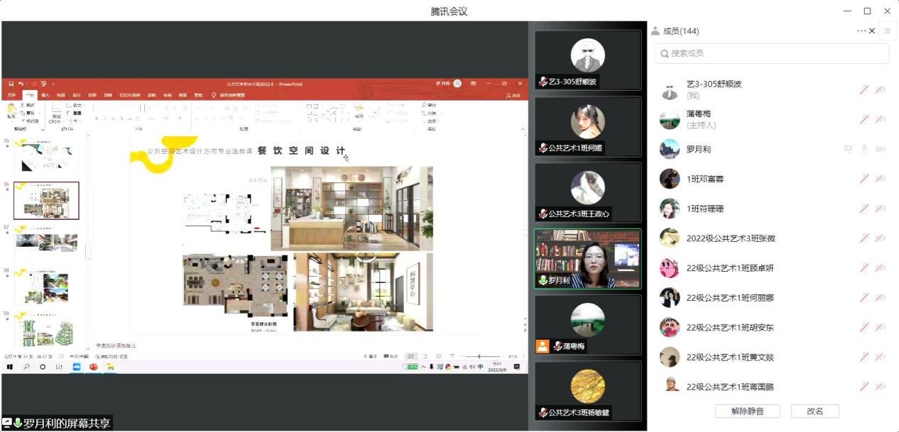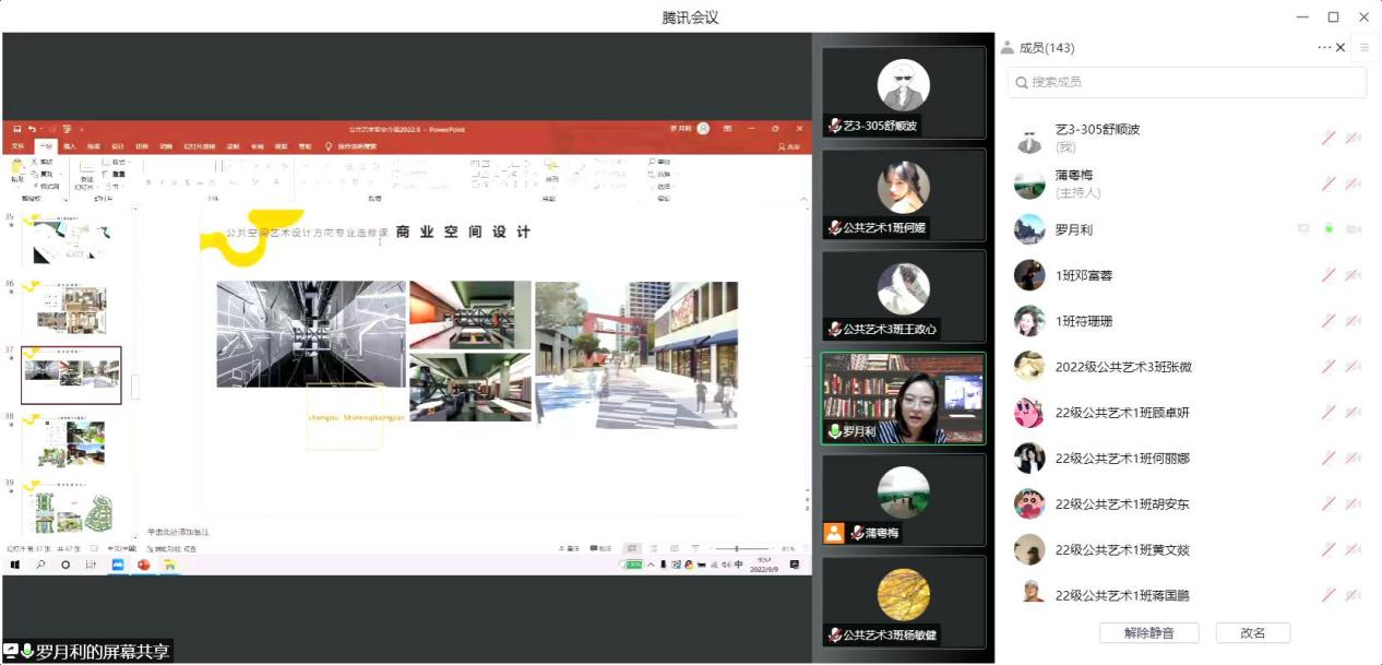 同一时间,蒲粤梅老师主要为同学们介绍了公共艺术设计专业必修课的课程内容,罗月利老师主要为同学们介绍了公共艺术设计专业选修课的课程内容,两位老师均细心讲解了课件内容,除已经准备好了的问题,在最后,蒲老师和罗老师都针对同学们可能出现的问题,进行了针对性解答。