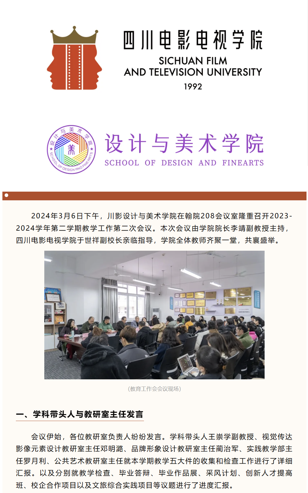 川影设计与美术学院召开2023-2024学年第二学期教育教学工作会第二次会议