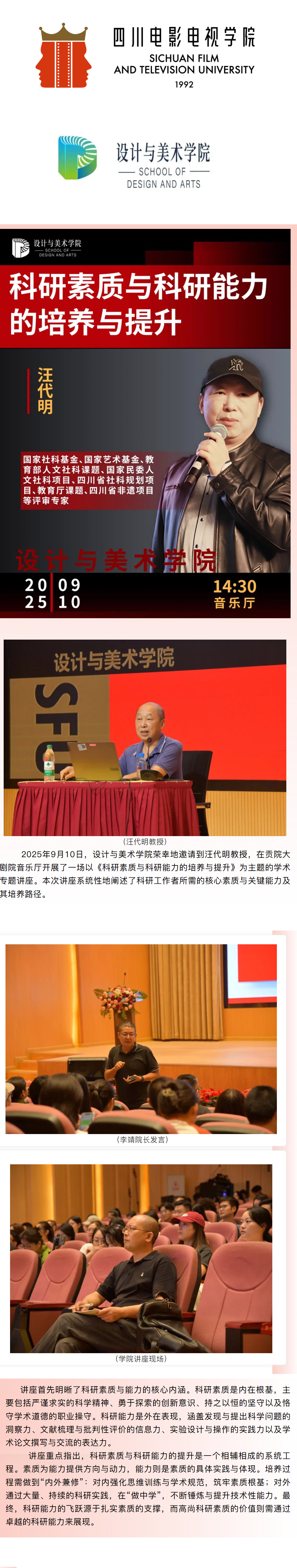学术讲座|科研素质与科研能力的培养与提升
