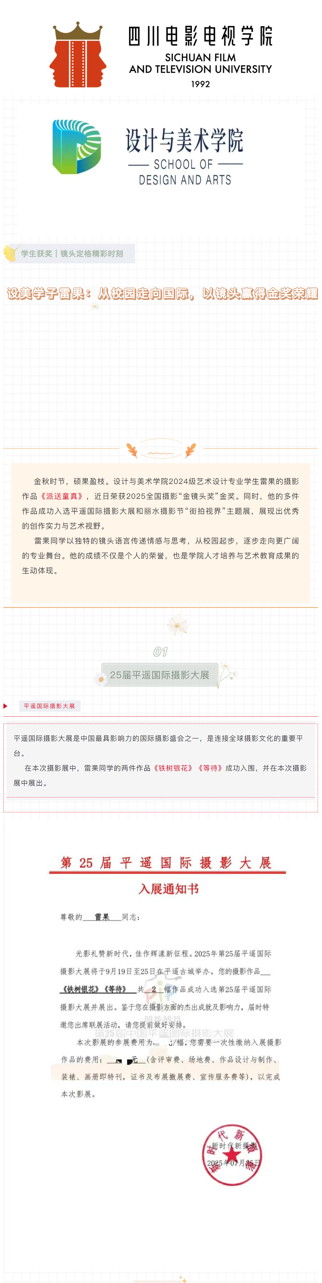 学生获奖 | 从校园到国际,奏响镜头进化论的三重奏,屡次用镜头定格荣誉