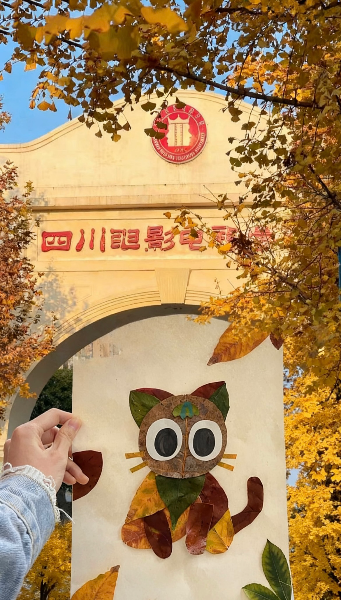 每一片叶子都被巧妙利用——银杏叶化作少女的裙摆,枫叶变成天鹅的尾羽,梧桐叶拼接成雄伟的建筑。不同颜色的落叶成为了最天然的"颜料",从翠绿到金黄,从橘红到赭石,大自然的调色盘在同学们手中焕发出新的生命力。这些作品不仅展现了川影设美学子扎实的专业素养,更体现了他们对美的独特理解和无限创意。