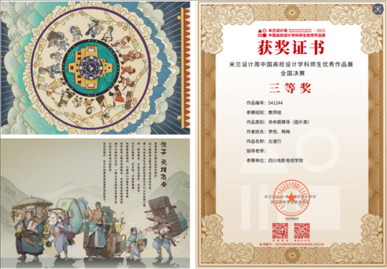 学生作品获奖第二届“小蝌蚪”动漫大赛;入选“运动无线——2025全国漫画动画作品展;获奖四川省大学生民族工艺美术创意设计大赛;入围中国美协艺委会学术研究展等