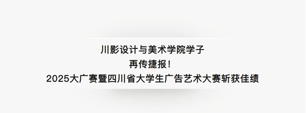继在2025四川省大学生民族工艺美术创意设计大赛中斩获47项等级奖项(一等奖9项、二等奖16项、三等奖22项)并荣获“优秀组织奖”后,我院学子在2025第17届全国大学生广告艺术大赛(大广赛)暨第11届四川省大学生广告艺术大赛中再度发力,凭借出色的创意与专业实力,斩获134项等级奖项(一等奖 二等奖、三等奖 )。现将大赛获奖名单予以公布。