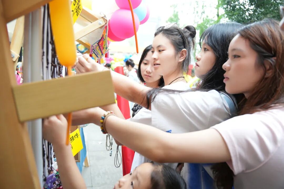 与此同时,义卖区热闹非凡,展台上摆满了孩子们精心制作的手机绳挂件、项链和手工陶瓷等精美物品。这些手工艺品含着孩子们的心血与创意,大家纷纷热情选购用实际行动支持小朋友们,为他们的努力点赞。整个活动现场洋溢着欢乐与感动,爱在互动中不断传递。