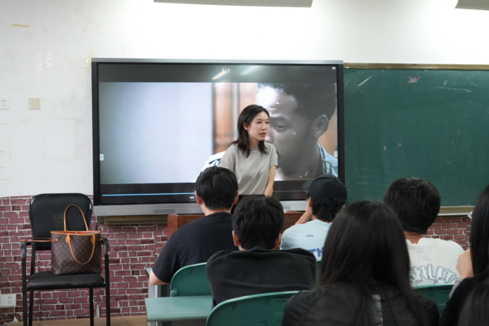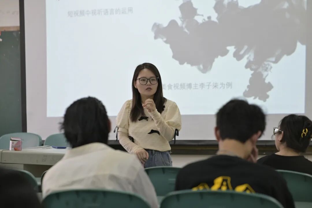 2025年5月12日,王燕老师以古风美食视频博主李子柒来引出短视频中视听语言的运用。并讲解了短视频目前发展状况、何为短视频、视频中的声画世界等内容。通过博主李子柒的短视频引出了视频中的独特光影和色彩、流畅的镜头叙事、声音的即贴近又疏离,引发了同学们的思考。并给同学们留下了一份独家作业。