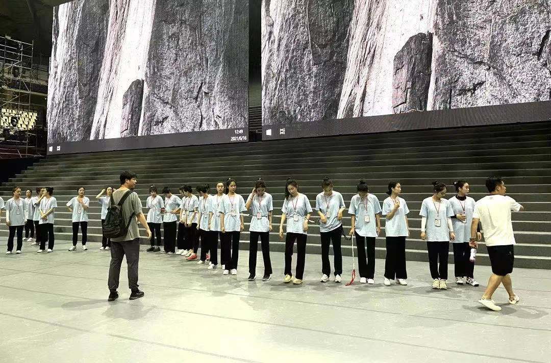 川影音乐舞蹈学院教师马永权回忆到,川影的同学们为了兼顾好演出和学习,都采用周六周日进行排练。“由于人员众多,前期一个半月时间都在学校艺步楼、翰院广场和贡院广场训练,空间大只能靠嗓子喊,天气炎热,大家通常是顶着高温暴晒,不少同学会出现中暑的情况,但最终还是坚持了下来。”