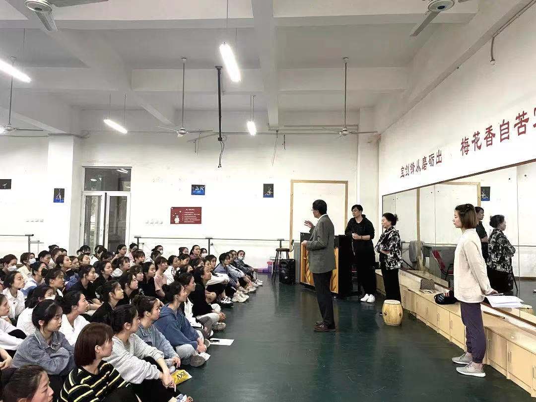 川影校长罗共和前往排练现场关心同学们排练情况,并给予指导