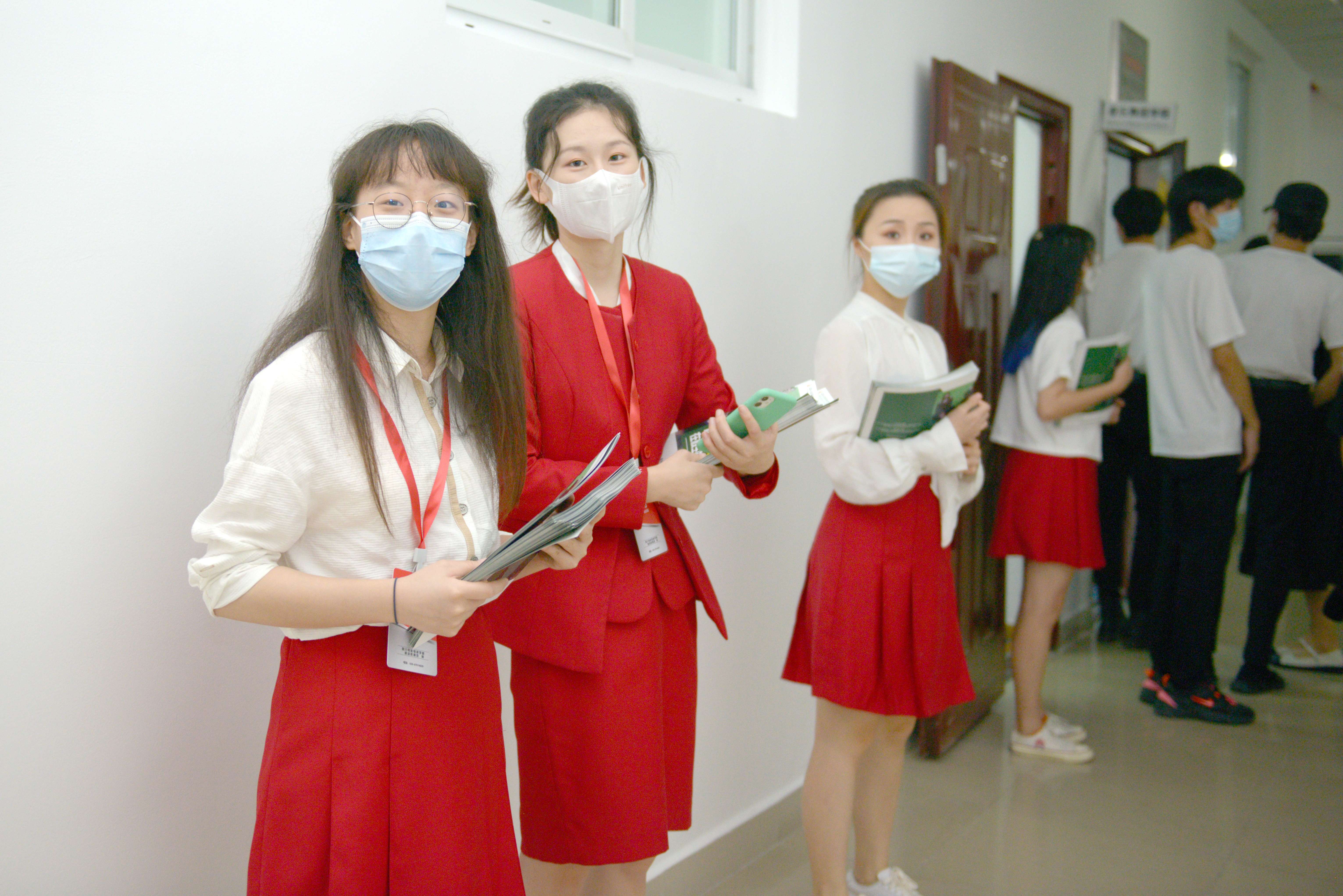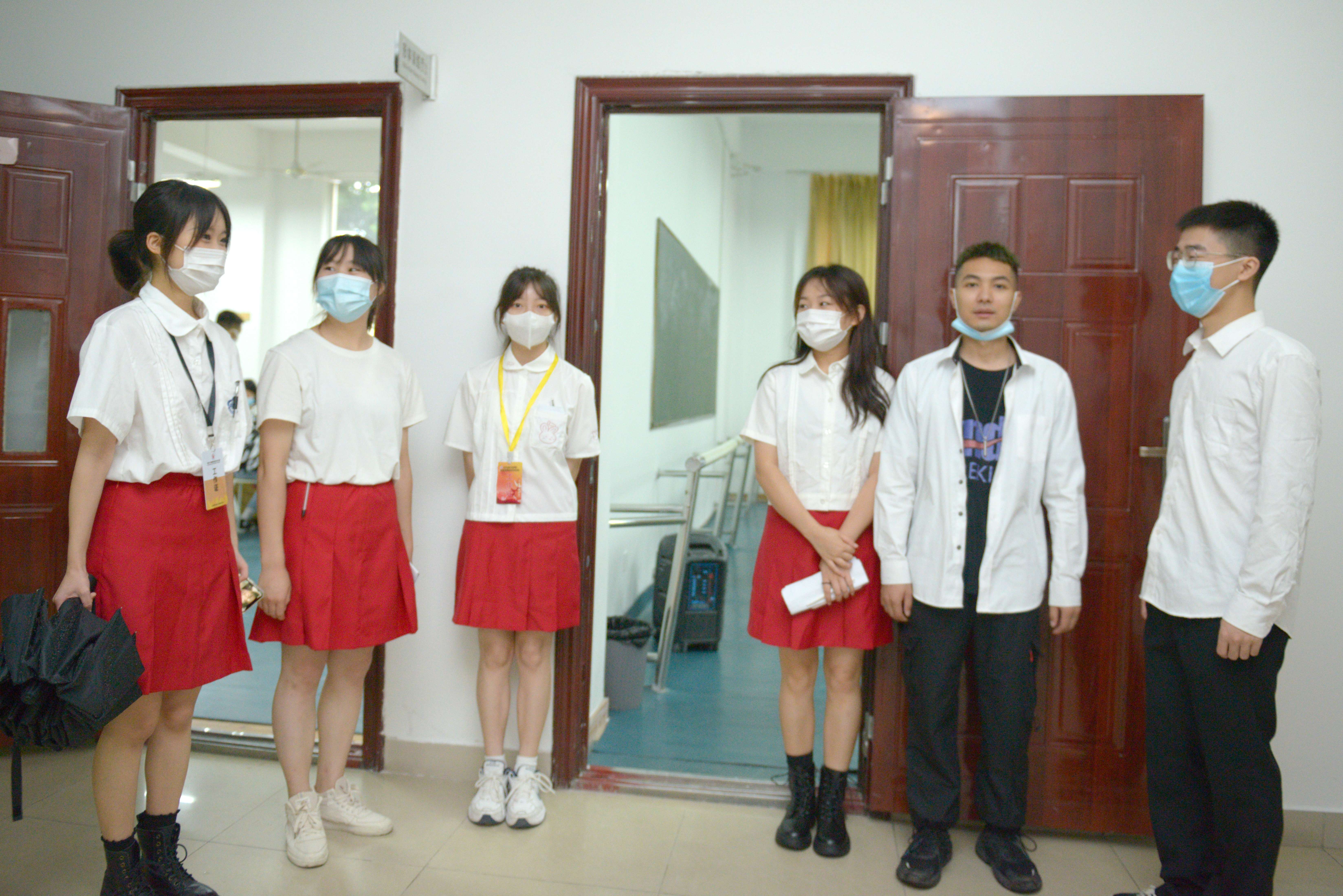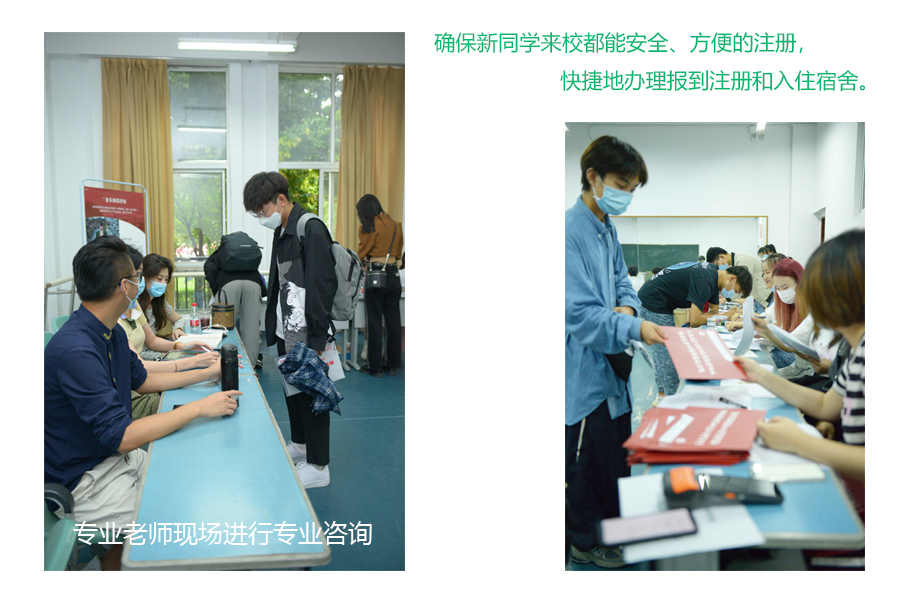 看!那些戴着工作证,面带微笑的正是我们可爱的志愿者们。他们有的在门口接应,有的在为新生测体温,有的帮忙检查是否带着核酸证明,有的为远道而来的新生扛行李.....