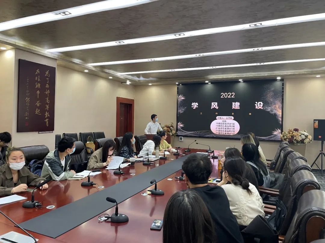 beat365平台官方网站音乐舞蹈学院2021—2022学年第二学期学风建设期中汇报于4月25日及5月9日安仁校区贡院二会议室举行。音乐舞蹈学院党委副书记陈一新老师以及音乐舞蹈学院全体辅导员到场参加。