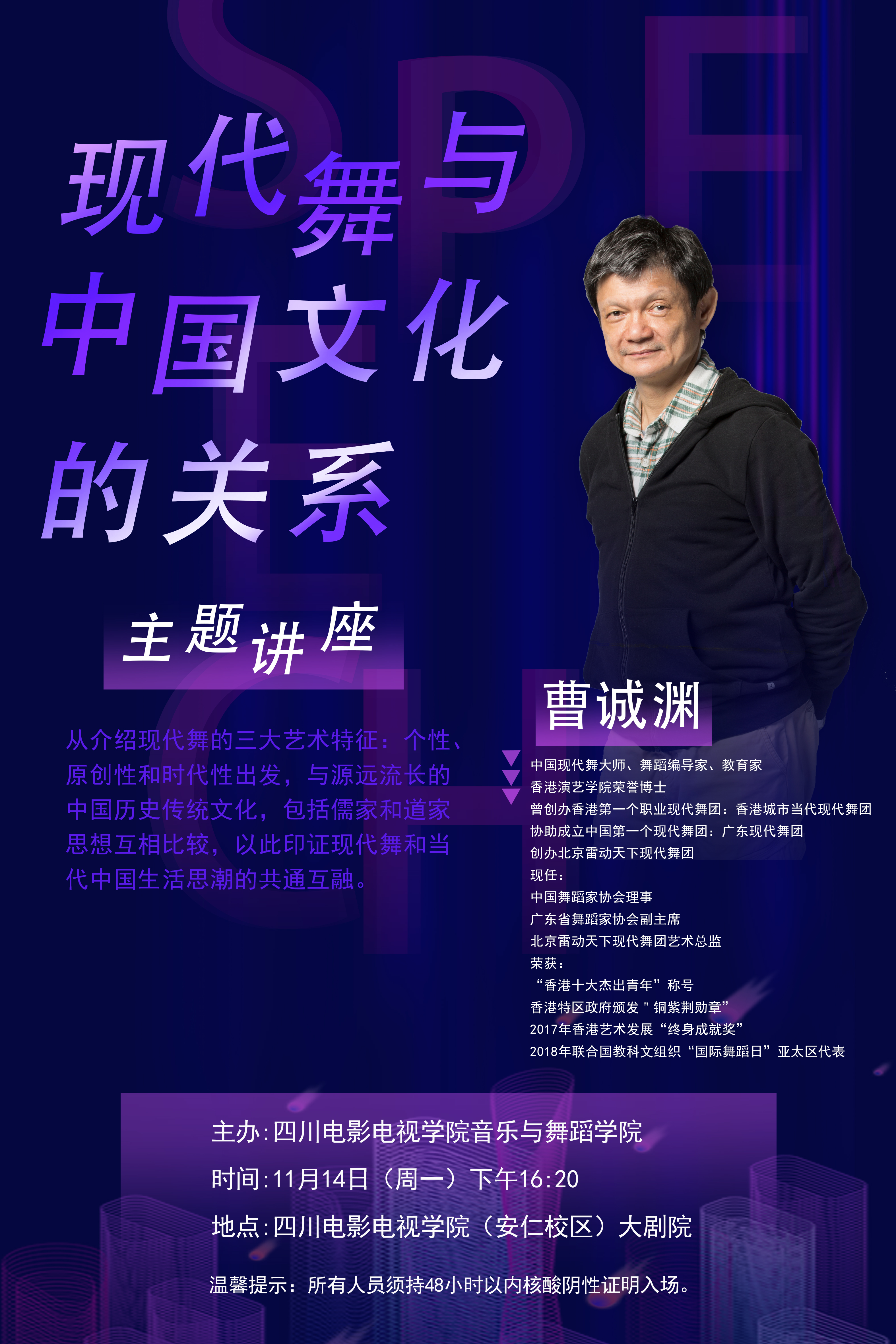 2022年11月14日,著名舞蹈编导家曹诚渊在我校安仁校区学术报告厅贡院大剧场开展以《现代舞与中国文化的关系》为主题的讲座,beat365平台官方网站常务副校长李健教授、音乐与舞蹈学院院长陈志惠教授、副院长陈翔副教授、副院长陈薇副教授以及部分师生参加本次讲座。