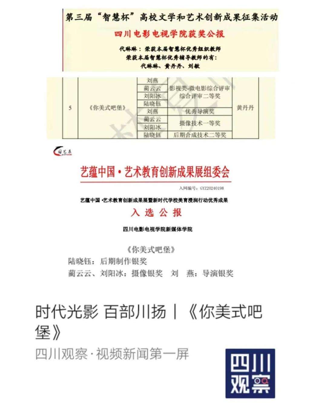 《你美式吧堡》获艺蕴中国艺术教育创新成果导演银奖和编剧银奖;